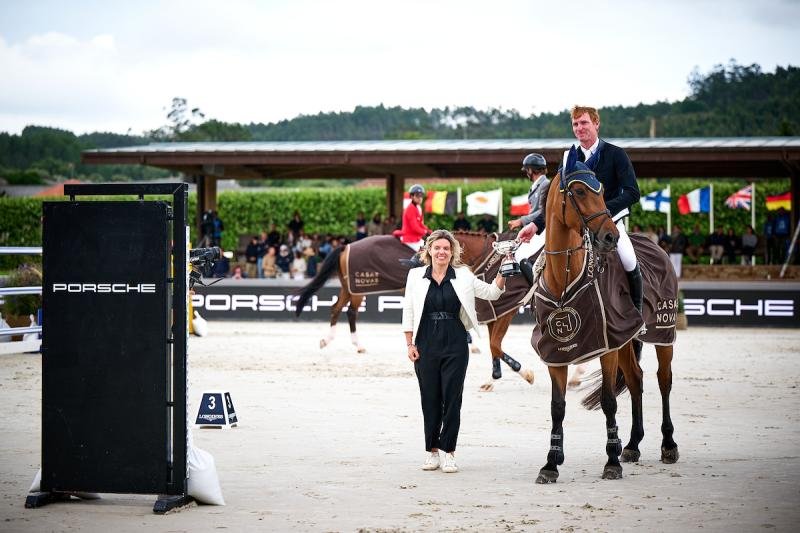After the Porsche Grand Prix trophy ceremony, Daniel Coyle took the winner’s lap driving a Macan, a model from the sponsoring brand. That was his prize for winning the most important event of the CSI3* A Coruña. The competition featured a long course with 1.55-meter-high jumps, and among the 32 combinations, six advanced to the jump-off.