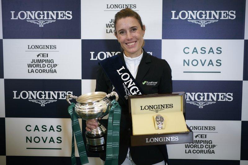 Flora Pérez Marcote gave the Grand Prix trophy presented by Casas Novas to the winner, Janne Friederike Meyer-Zimmermann, who subsequently received the Longines trophy from Elena Orozco, Brand Manager of Longines Spain. All this within the framework of a beautiful ceremony to close an edition of the CSI5 * W A Coruña marked by the success of the audience and participation, which has brought to Casas Novas an impressive list of elite riders in the world ranking.